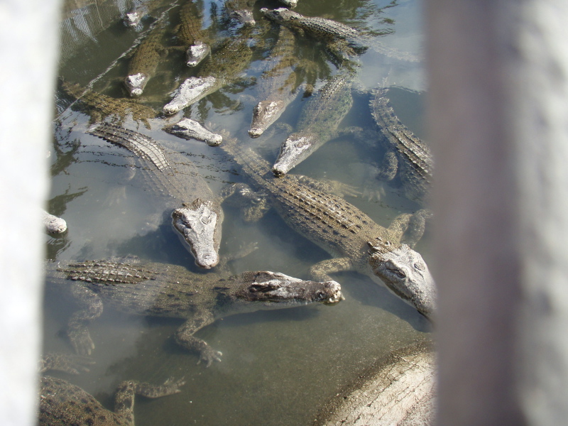 ここはワニだらけ、時間が合えば餌やりや子ワニに触ったりできるらしい。