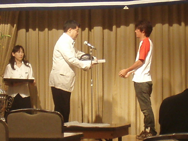 遠くから「新人は景品貰ったら前に出て一曲うたわんかぁ」