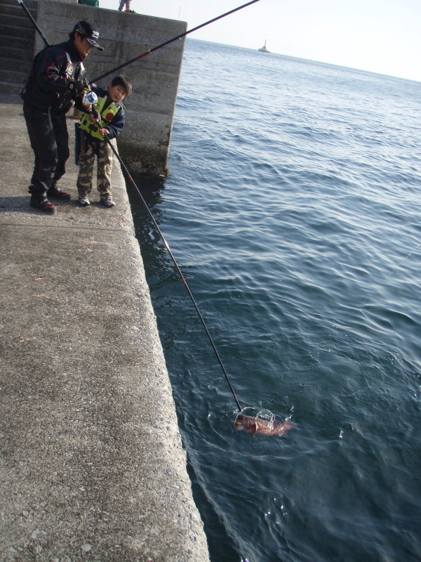 チビにタモ入れを手伝ってもらい無事にゲット。^^