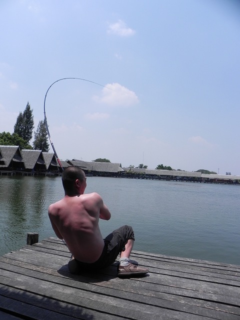 「おぉ・・・この竿じゃダメだね・・・折れるよ・・わははは」