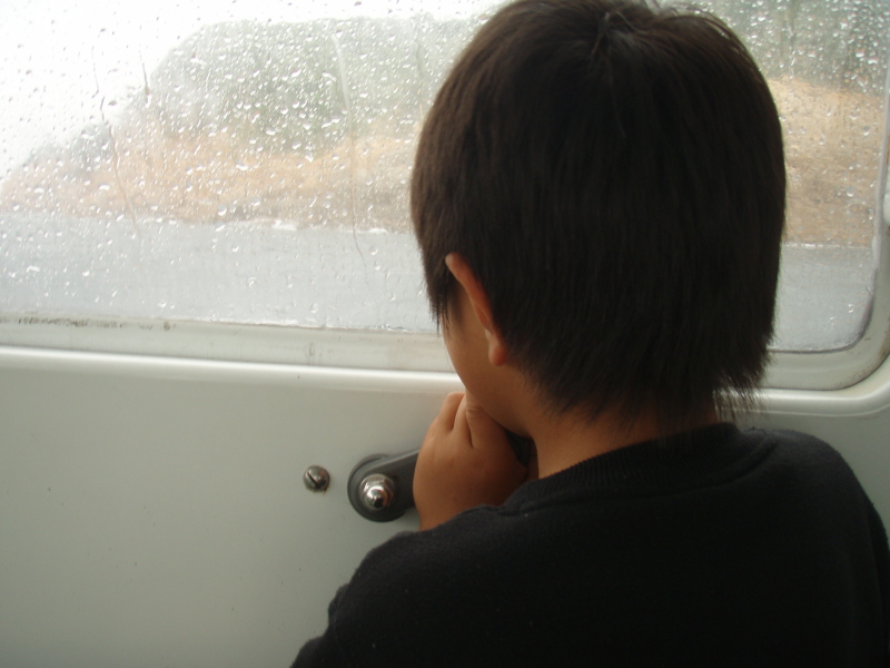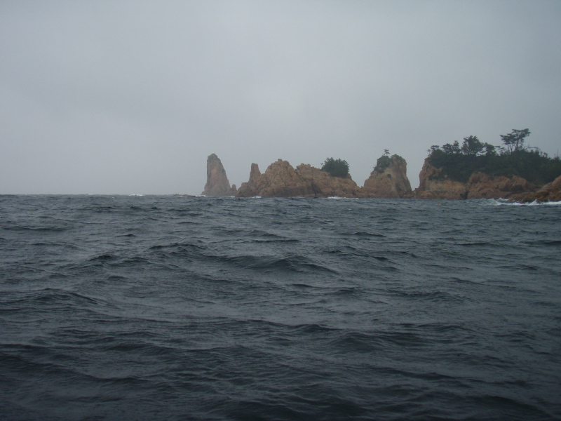 約1時間ほどの船旅ですが雨と水しぶきでほとんど見えず