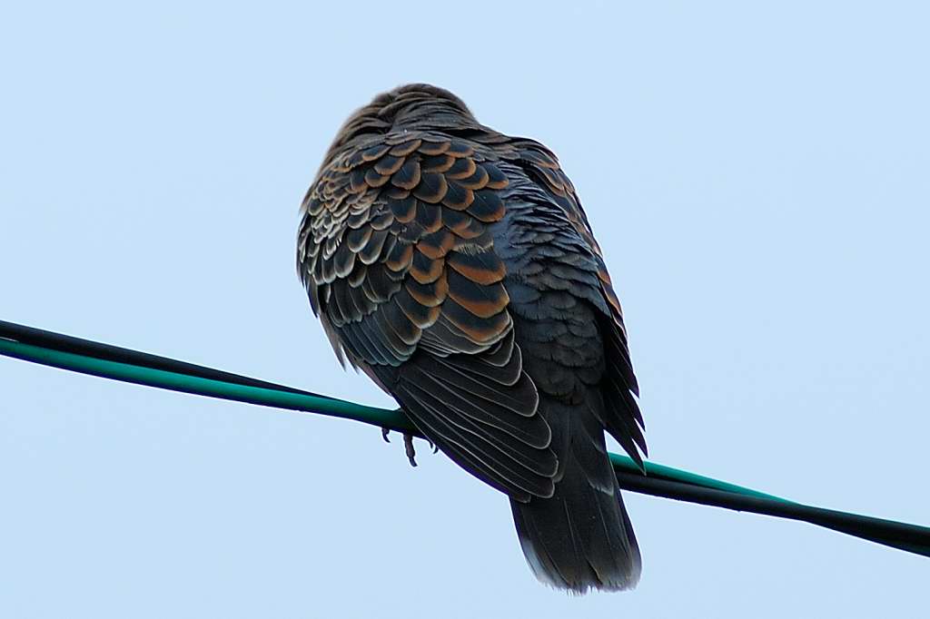 部屋の前の電線に止まってたキジバトも