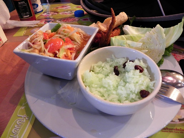 キャベツとチキンとソムタム・・・これで値段忘れたけどめちゃ高かった