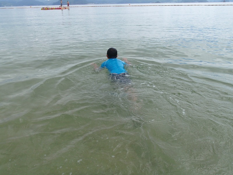 沖にある浮き桟橋まで浮き輪などの浮力体なしで