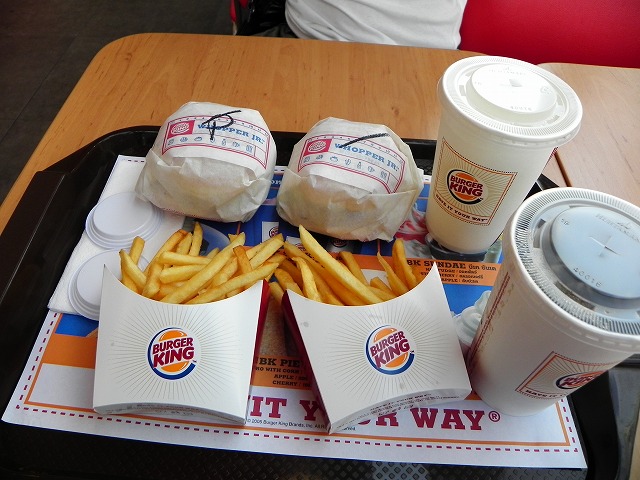 朝食の無いホテルを出て近くのバーガーショップで食事