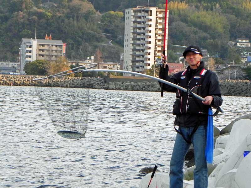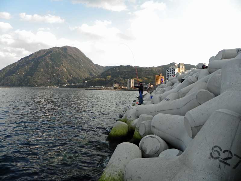 何とか波止中間地点に場所を確保して早速釣り開始