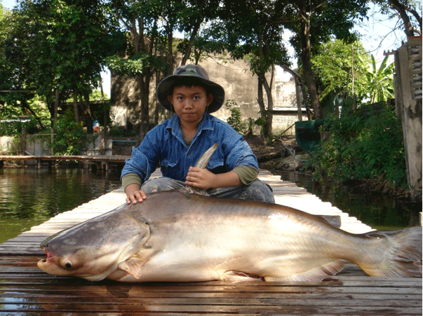 このメコン大ナマズは雑食性でどちらかというと