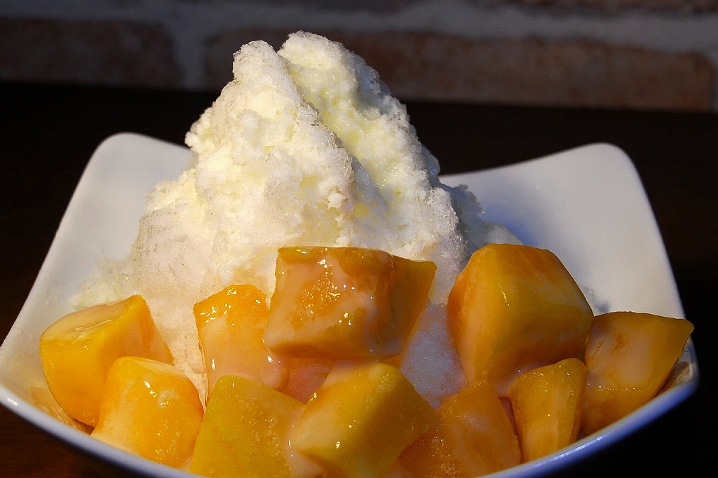 ふわふわの氷の上にマンゴーをたっぷりと乗せ