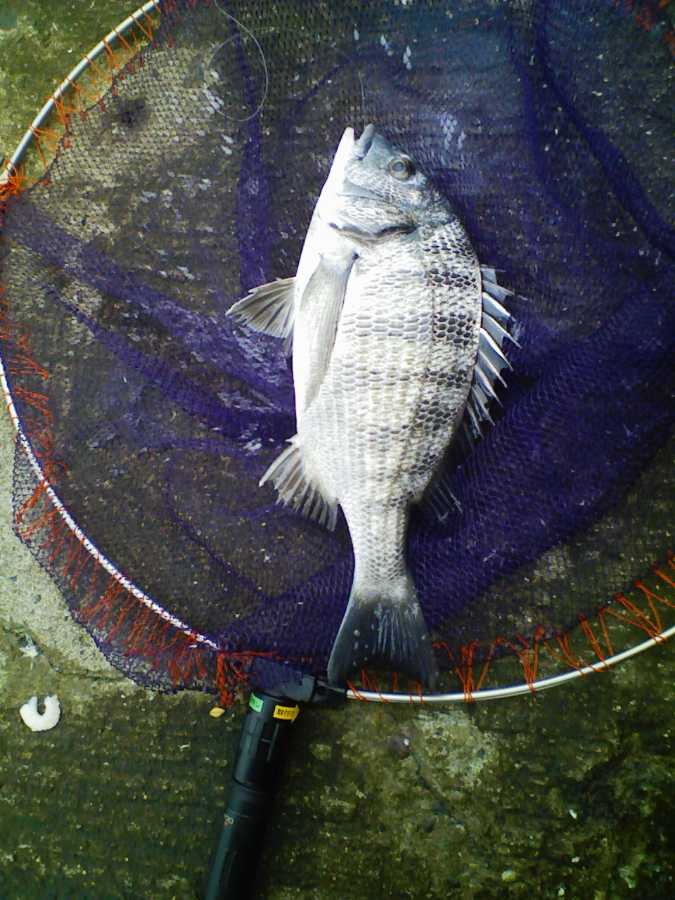 釣り場は足下から7mほど沖までテトラが入っており途中3回ほどきられました^^;